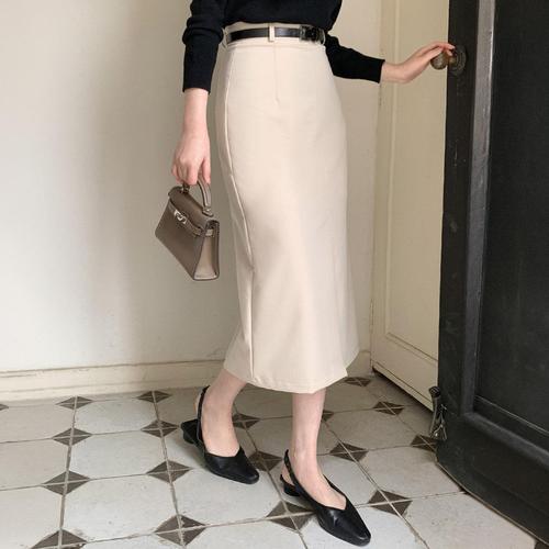 [시크블랙]히랄누 앞트임 H라인 스판 벨트 세트 롱스커트
