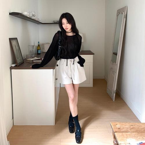 [시크블랙]테성에 나그랑 스트랩 보트넥 시스루 니트