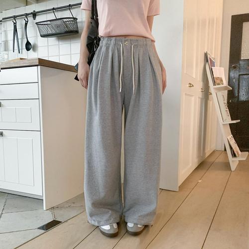 시크블랙 여성용 라인드 허리밴딩 투턱 바스락 일자 팬츠 cppt14336k47