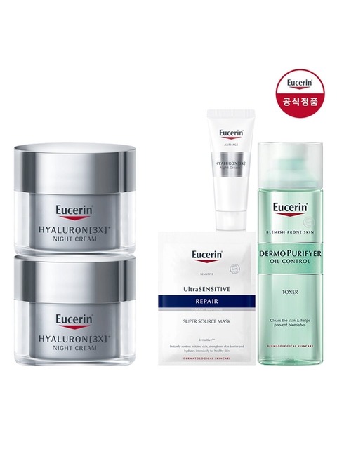 [유세린] 유세린 하이알루론 3X나이트크림 50ml 더블팩 [증정]더모퓨리파이어 오일컨트롤 토너 200ml +3X나이트크림미니 7ml +울센마스크 1매
