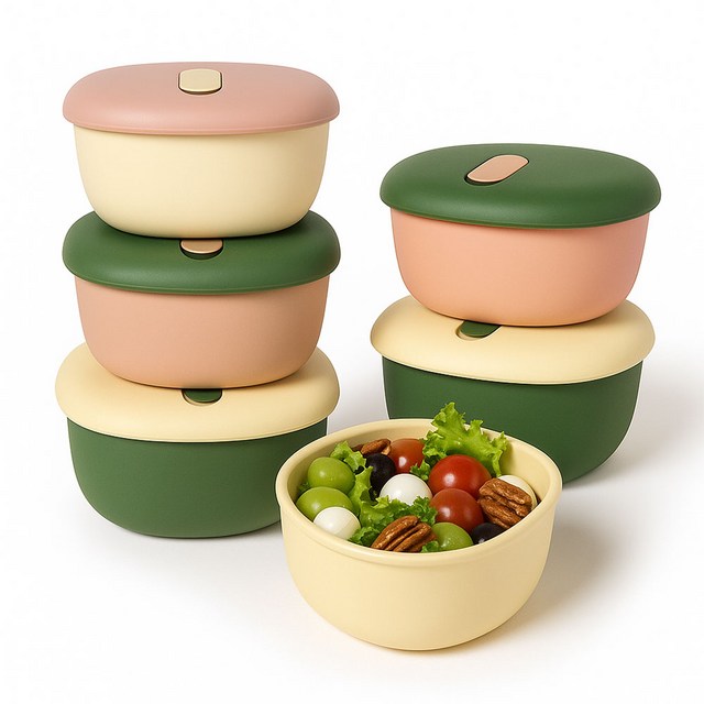 국내생산 파스텔 실리콘 밀폐 용기 즉석 밥 도시락통 찬합 샐러드 원형 사각 소형 중형 대형 반찬통 1칸 2칸 3칸