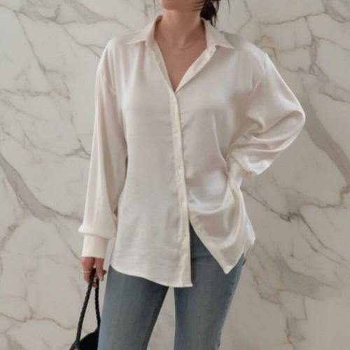 [옷자락]여성 우아한 실크 샤틴 끈민소매 탑