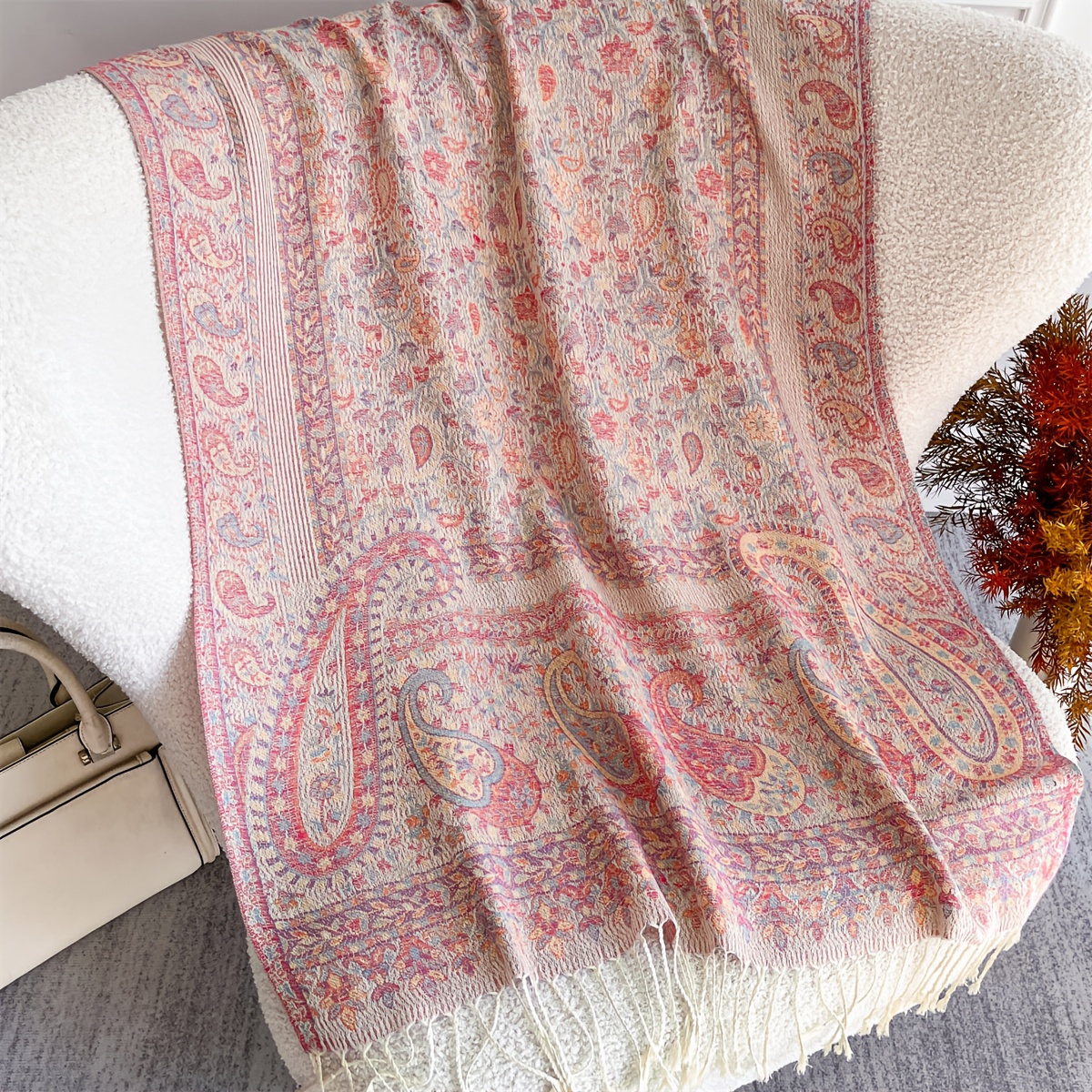 TEMU 1개 소프트 페이즐리 태슬 스카프, 70×180cm 핑크·보라·파랑 톤의 우아하고 스타일리시한 샤울, 양면 라이트 베이지 통기성 원단과 정교한 프린지 디테일, 사계절용 다목적 패션 액세서리, 파티 캐주얼 의상에 완벽