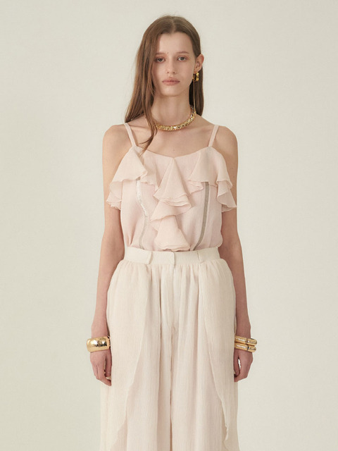 [까이에] 로맨틱 실크 프릴 끈나시 뷔스티에 블라우스_소프트피치