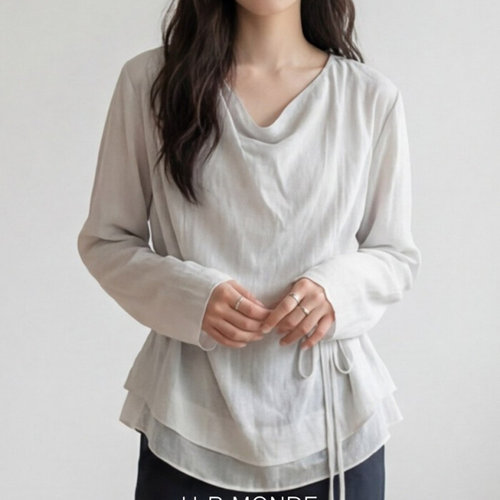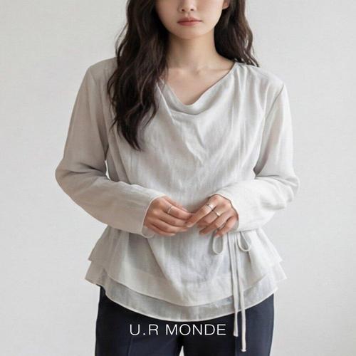 [유아몽드]실키 여리핏 랩 블라우스 허리끈 간절기 이지웨어 시