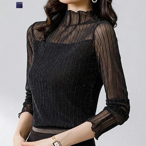[페이릿] 로맨 실키 트윙클 시스루 하프넥 블라우스