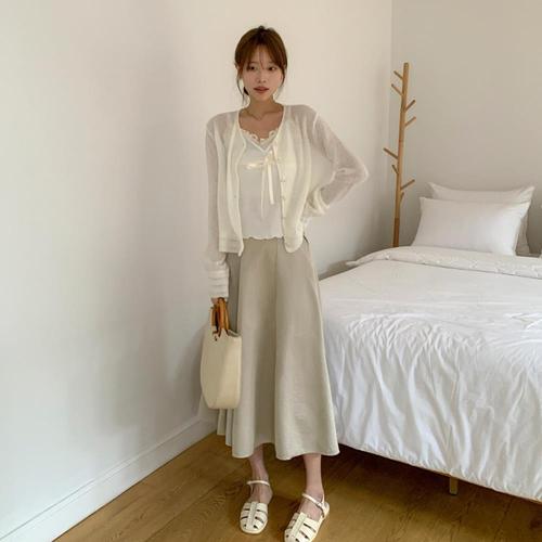 [옷자락]여자 데이트룩 고급스러운 실키 샤틴 끈나시