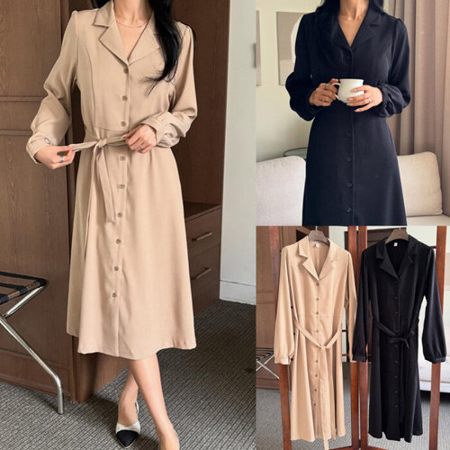 비비에모 실키 허리 핀턱 아일렛 셔츠 원피스 00329