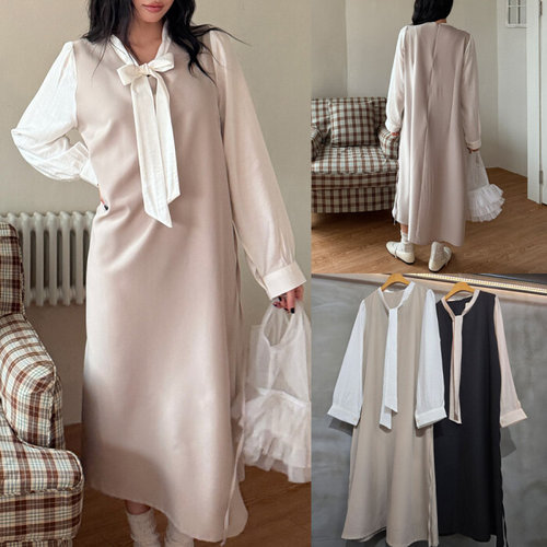 [모노무드]모노무드 은플레이스 스판 배색 빅사이즈 실키 306L067S 원피스
