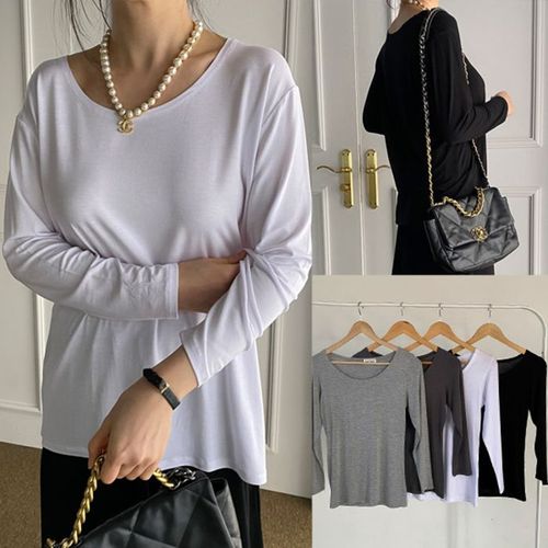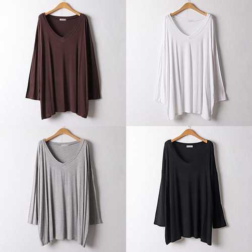 빅사이즈여성의류 실키 브이넥 롱 티셔츠 찰랑찰랑 부드러운 감촉 루즈핏 스판 원단 레이온 긴팔티 66-120 size