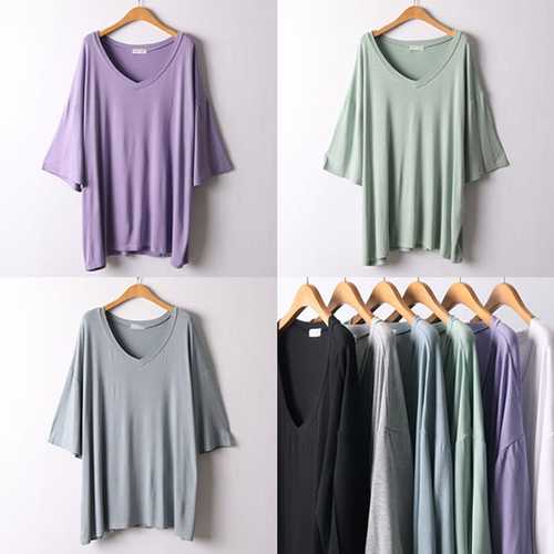나야홍 / 위쉬몰 RA 루즈실키딥브이티셔츠(F084H602) 빅사이즈