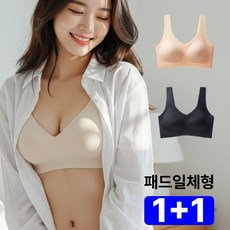 (1+1세트) 패드일체형 심리스브라 여성 스트랩 노와이어 극찬브라 브라탑