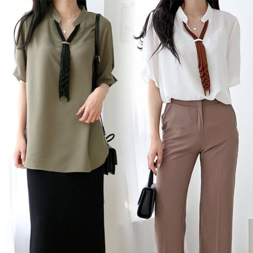 [숲]심플 타이 쉬폰 V넥 블라우스 SB3LS91A