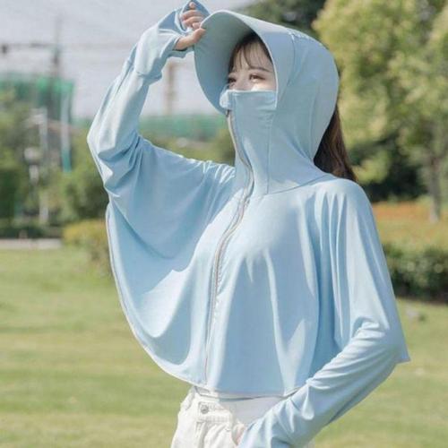 여성 통기성 후드 크롭 쿨 핑거홀 페이스 마스크 자외선 차단 썬캡 바람막이