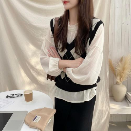 [셀럽하우스]아가일 ZXWG9186 인기 2컬러 패턴 레이어드 니트 조끼 베스트
