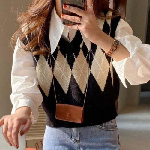 [신상오픈런]여성 브이넥 아가일 체크 패턴 니트 조끼 봄가을용