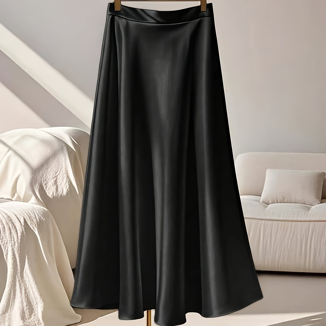 TEMU 여성용 하이웨이스트 비신축 A라인 스커트 - 우아한 캐주얼 & 정장 대체, 지퍼 클로저, 세탁기 사용 가능 - 블랙 일상/오피스/파티용, 사계절 스타일리시 바지, 파티웨어, 세련된 디자인, 매끄러운 새틴 소재, 사무실 착용, 비신축 원단