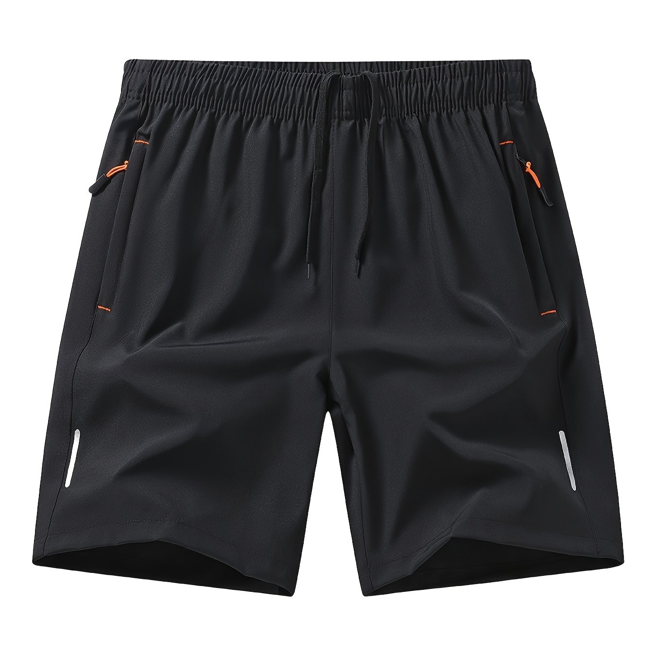TEMU 남성용 드로스트링 런닝 반바지 (여름용), 통기성 좋고 편안함, 반사 스트립, 지퍼 포켓이 있는 단색, 피트니스, 야외 러닝 및 등반 활동에 적합