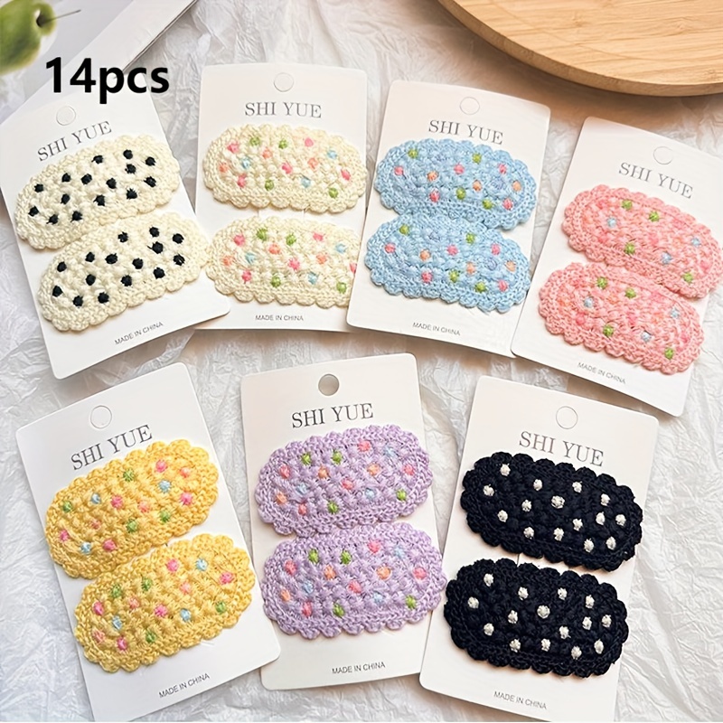 TEMU SUTNSCW 14개 플란넬 헤어 클로 - 세련된 니트 원사 헤어 클립, 물방울 무늬, 다양한 색상 - 여성용 중간 크기 헤어 액세서리, 친구 및 여자 친구에게 완벽한 선물