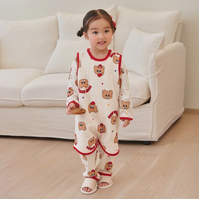 [삐까부]유아 아동 아기 가을 겨울 수면조끼 곰돌이 기모 수면바지