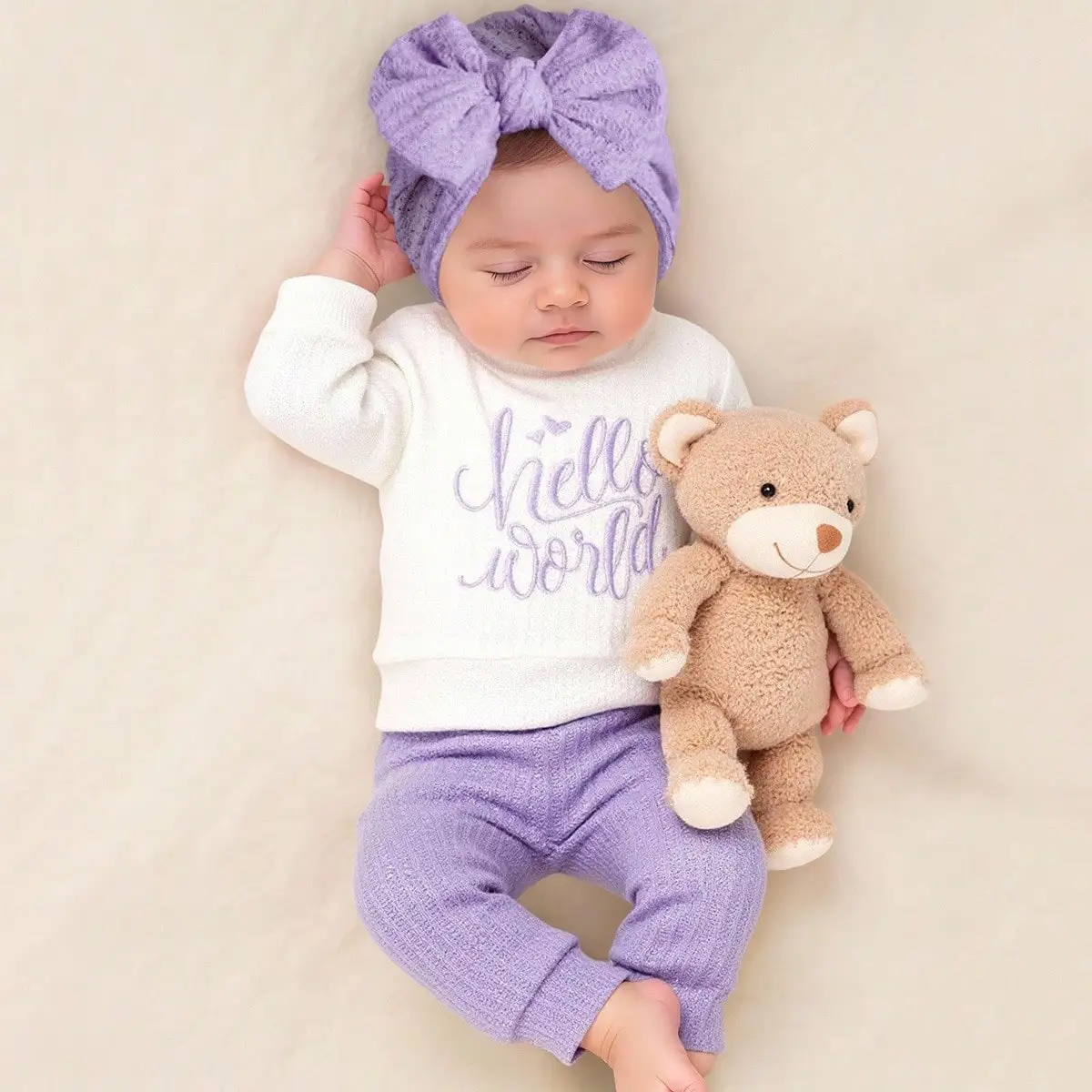 Ylsteed '헬로' 자수 신생아 사진 촬영 소품 아기 롬퍼 점프수트 리본 모자 아기 집에 오는 날 의상 아기 사진 선물