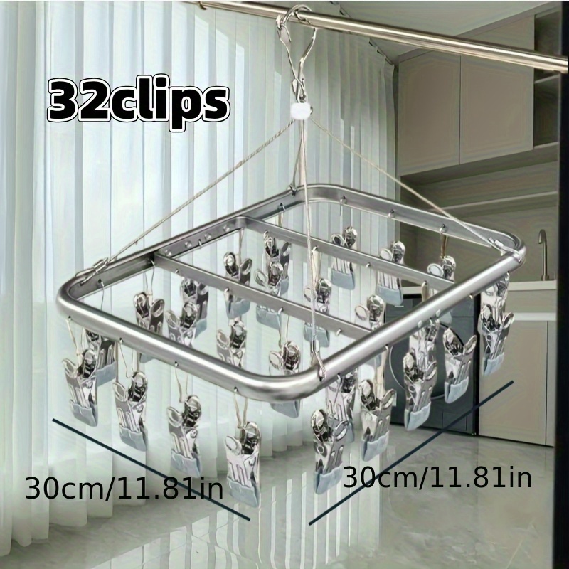 TEMU 알루미늄 합금 양말 건조대, 스테인리스 스틸 양말 건조대, 멀티 클립 포함, 회전 후크 방풍 걸이, 양말 건조대, 브라, 속옷, 아기 옷, 강력한 클램핑, 홈 발코니 야외 건조대 세탁 액세서리, 건조대|행거