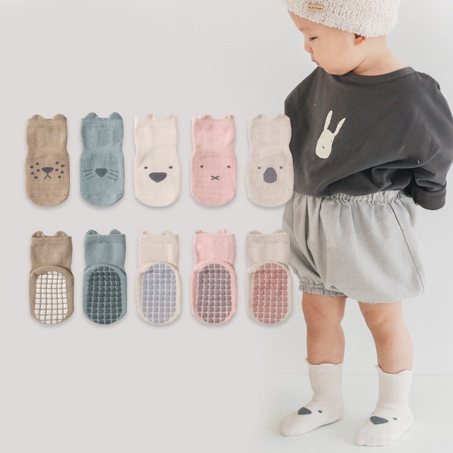 아이뿜 아기양말 뽀작 동물 미끄럼방지 키즈카페 양말 5족 세트 JB02