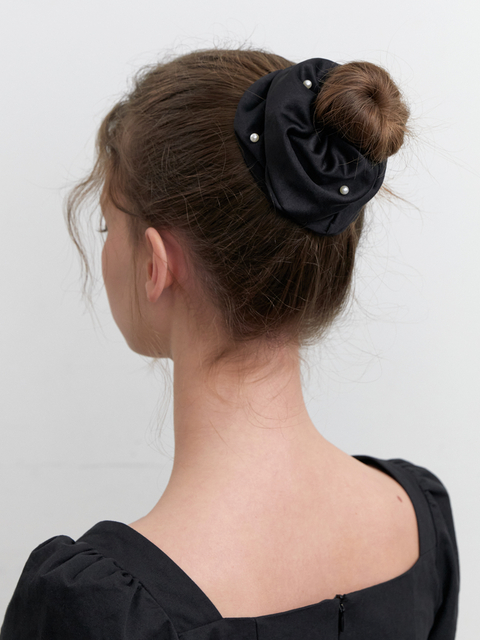 [카인더베이비] sarah satin pearl scrunch - black