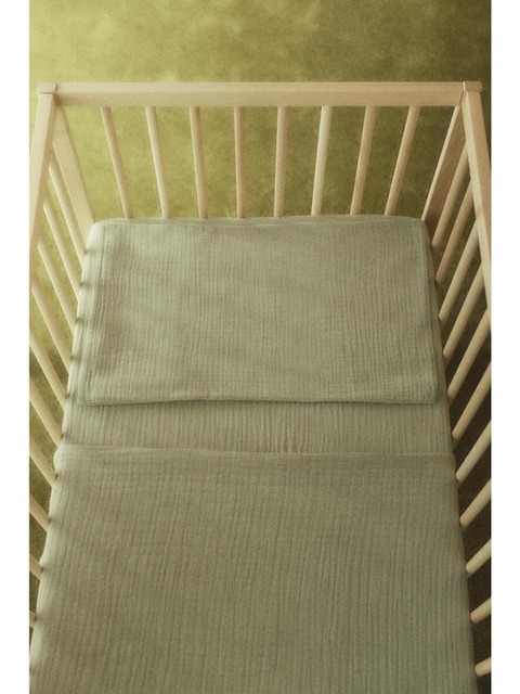 [에이치엔엠] 모슬린 아기 침대 이불커버 & 베개커버 세이지 그린 1219010008