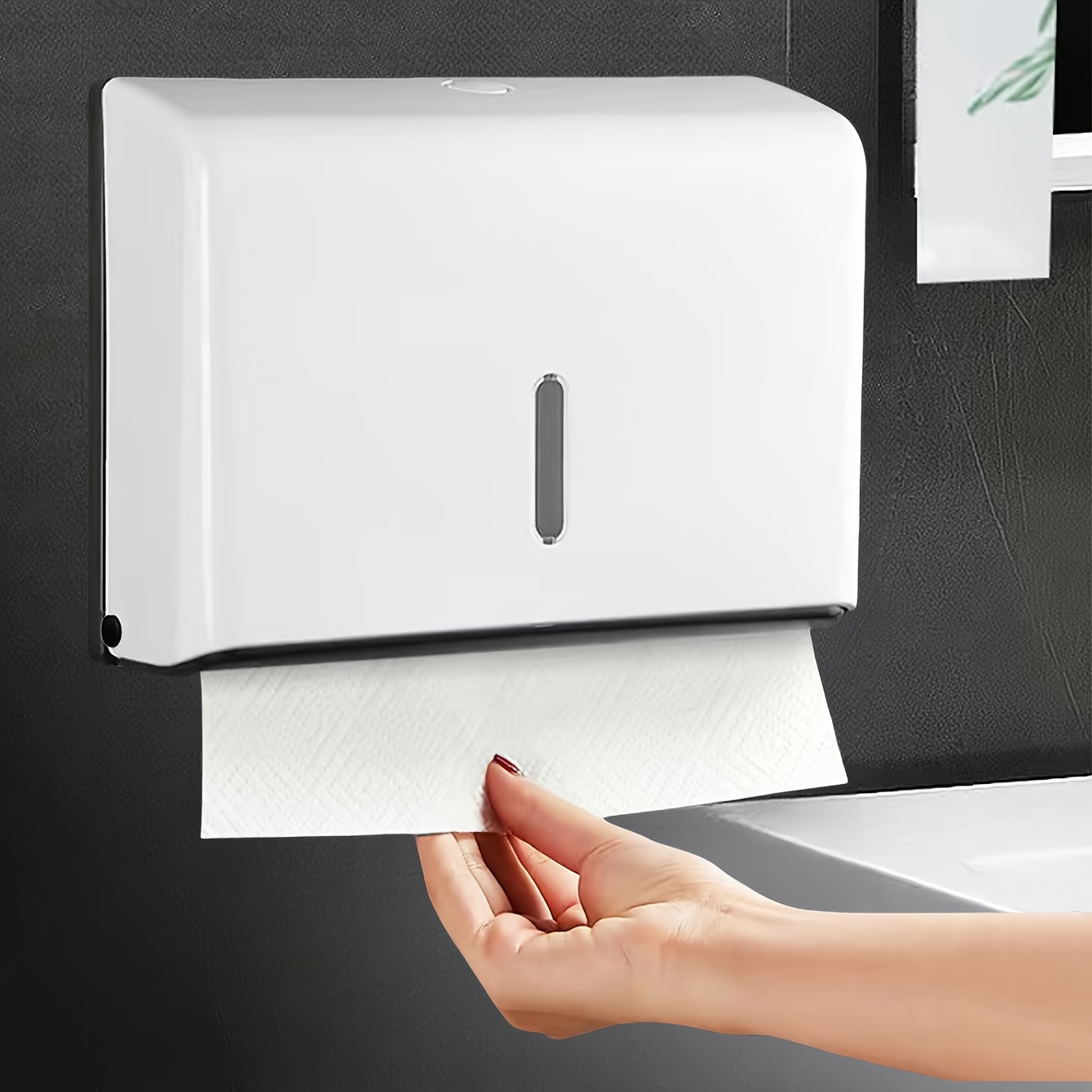 TEMU 대용량 핸드 타월 홀더 (200장 이상 수납 가능), 펀치/펀치 없는 설치 액세서리 포함, 고경도 ABS 플라스틱 제작, 다양한 색상 옵션, 벽걸이 욕실 티슈 박스, 무드릴 설치, 방수 주방 타월 디스펜서