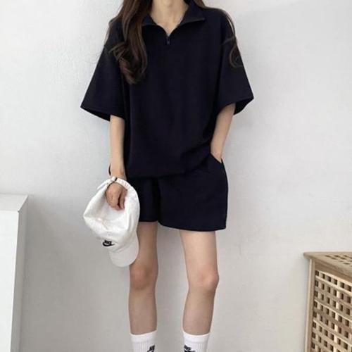 [옷자락]여성 캐주얼 아노락 오버핏 반팔 집업 반바지 세트