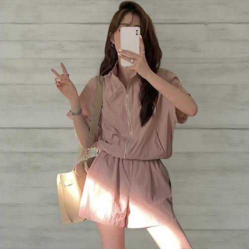 여성 여름 아노락 집업 반팔 쇼츠 반바지 트레이닝 세트