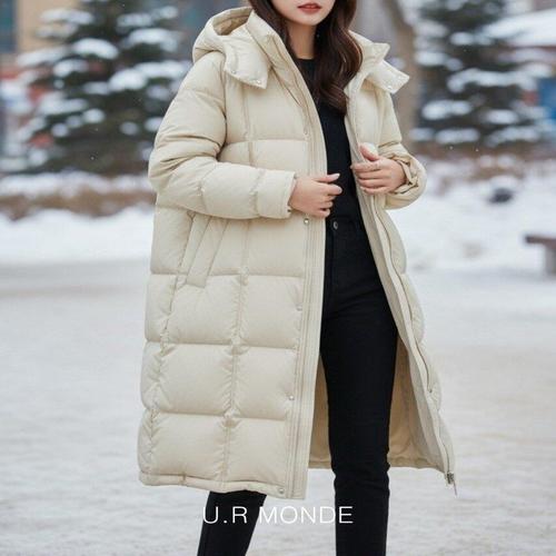 [유아몽드]페미닌룩 후드 롱패딩 겨울 집업 퀼팅 여성 점퍼 (베