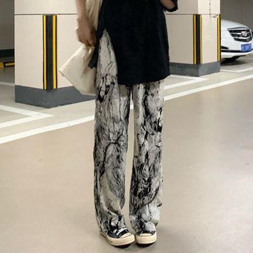 F1498 대리석 흘림 무늬 밴딩 통 일자 와이드 바지 WFL8D8V