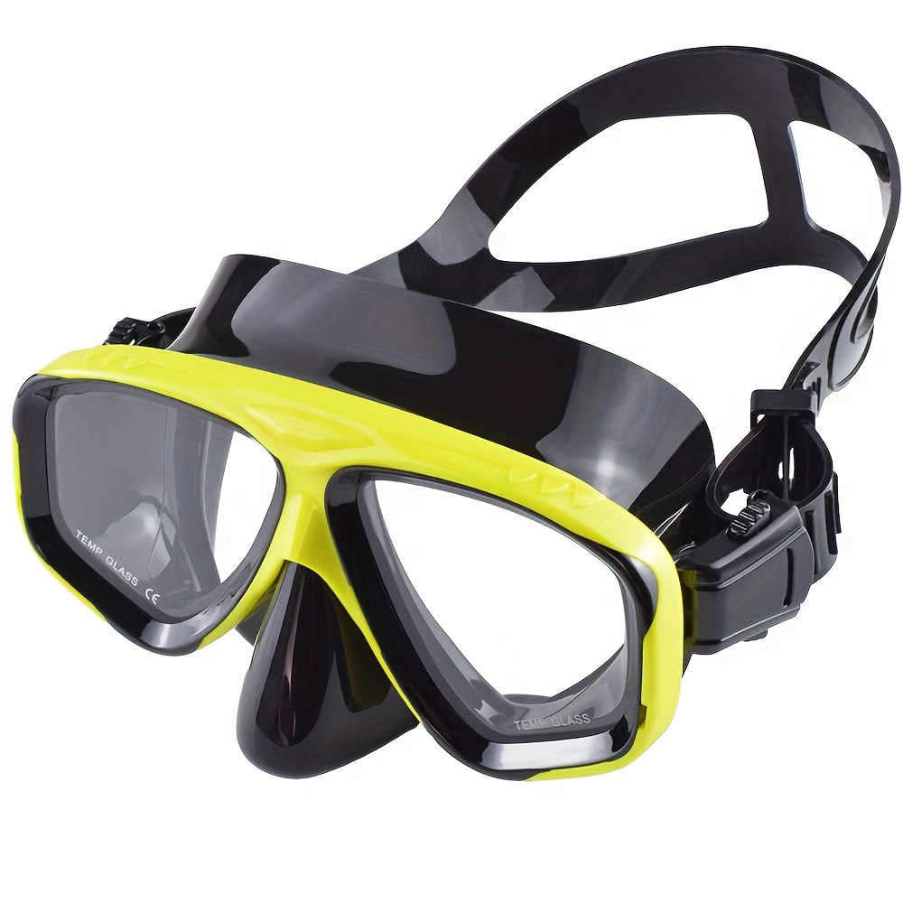 TEMU 실리콘 스노클 마스크 강화 유리 렌즈 조절 가능한 스트랩 수영 고글 넓은 시야 코 커버 포함