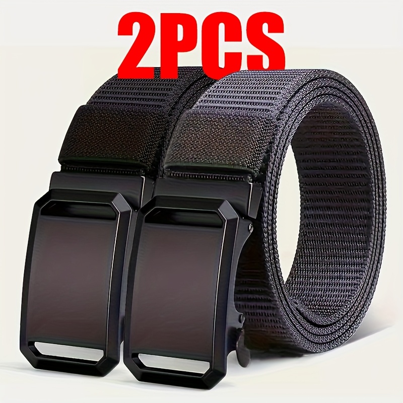 TEMU 남녀공용 조절 가능한 캔버스 벨트 2개 세트 - 자동 버클이 있는 튼튼하고 스타일리시한 디자인으로 아웃도어 트레이닝 및 캐주얼 웨어에 적합, 대학 스타일.