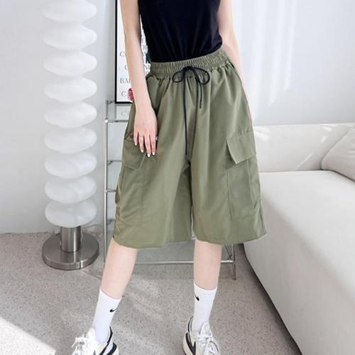 [JHQRSJMU_4B]여자 시원한 반바지 카키색 5부 여름 스트릿