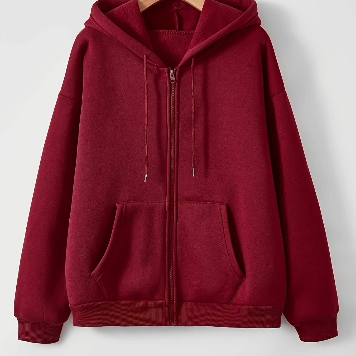 TEMU 여성용 편안한 플리스 안감 후드티 - 단색 긴팔 캥거루 포켓 풀오버, 스트리트 스타일, 폴리에스터, 세탁기 사용 가능, 사계절 캐주얼 스웨트셔츠