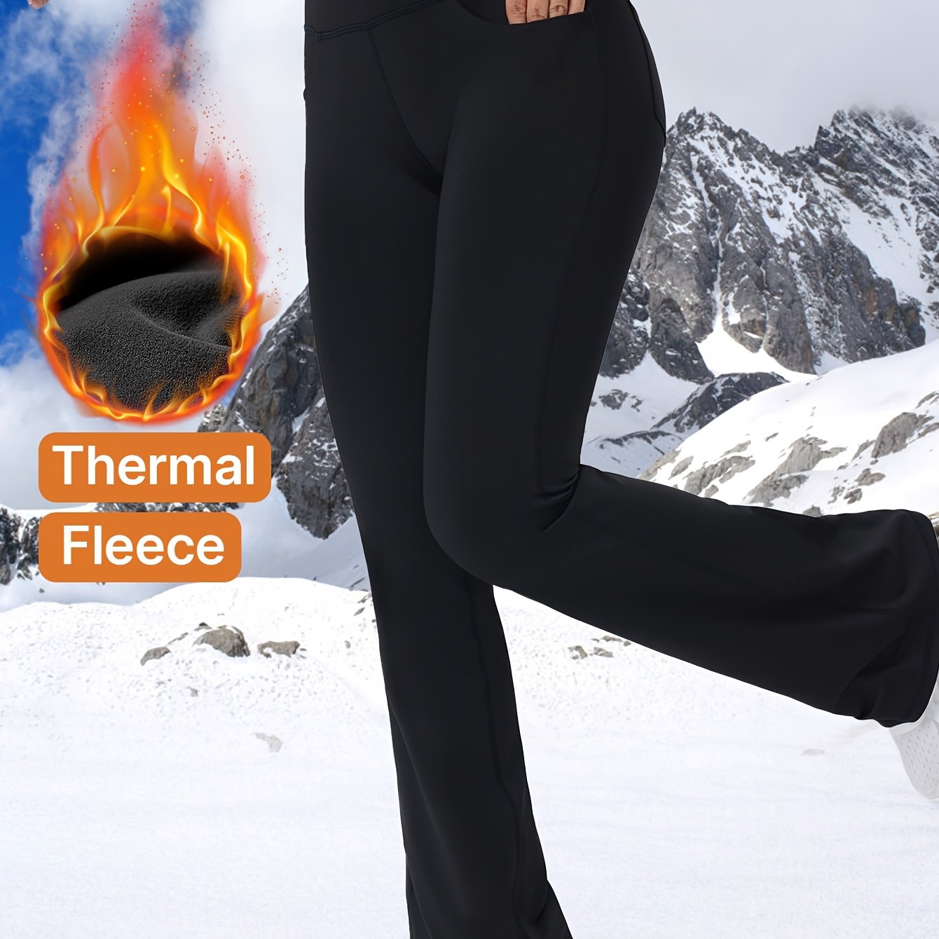 TEMU 겨울 여성용 하이웨이스트 힙업, 복부 제어 스포츠 롱 팬츠, 핏되는 플레어 디자인, 피트니스 및 요가 훈련에 적합. 이 고탄력의 약간 플레어형, 기모 안감 요가 바지는 가을 및 겨울에 완벽합니다.
