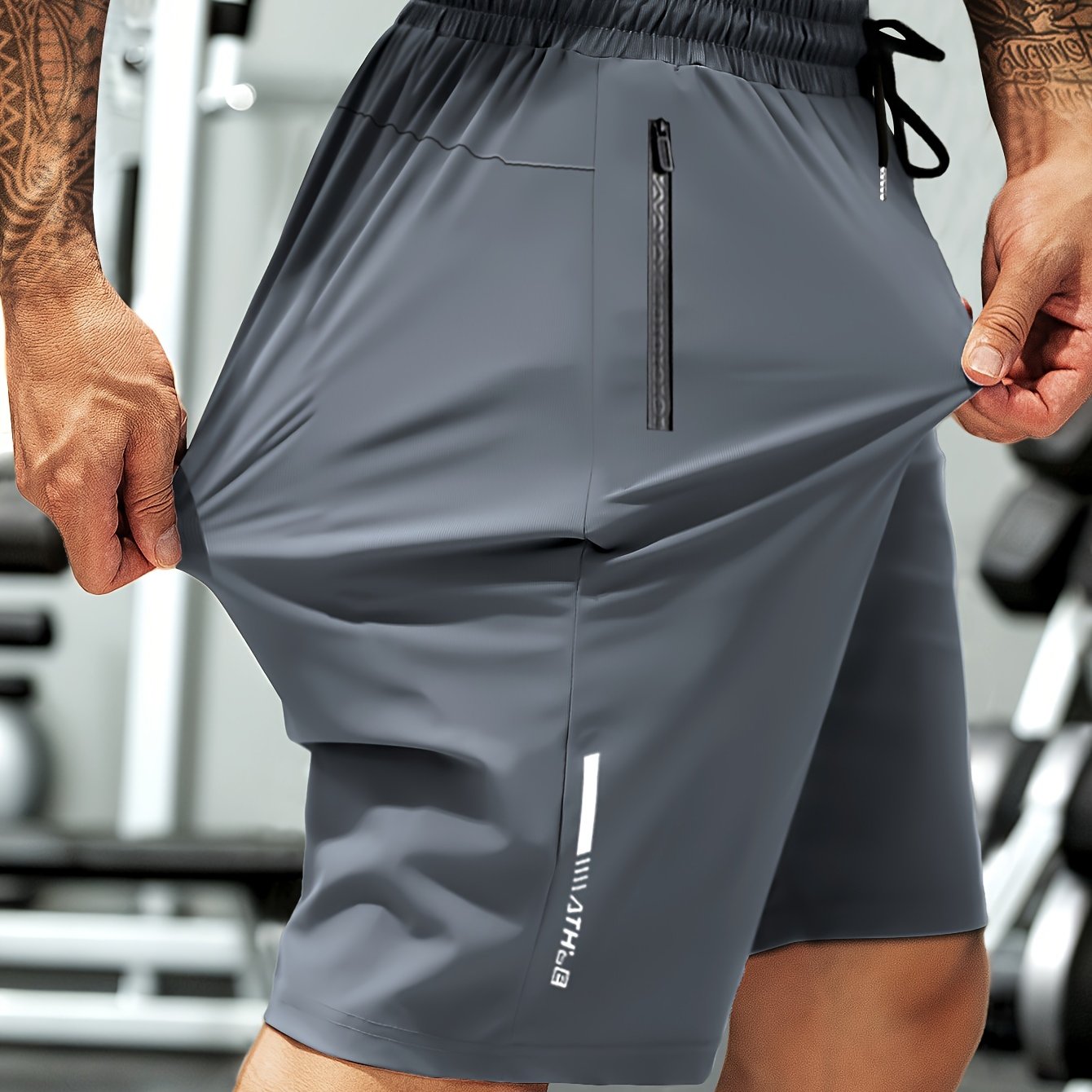 TEMU HIDKAT 남성용 고탄력 아이스 슬리키 섬유 트레이닝 반바지 - 지퍼 포켓 & 드로스트링 허리, 여름 야외 헬스 반바지, 캐주얼 착용용 솔리드 컬러 애슬레틱 (쿨링 아이스 슬리키 기술)