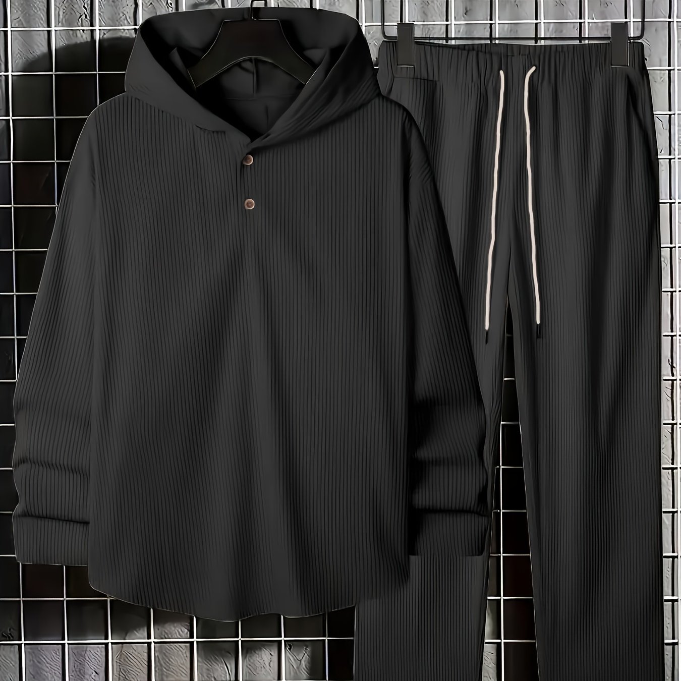 TEMU 세련된 남성용 캐주얼 및 레저 의상 세트. 솔리드 컬러 트렌디 후드 드로스트링 재킷과 사이드 포켓 드로스트링 테이퍼드 팬츠가 특징입니다. 이 긴소매 지퍼업 재킷은 성숙한 남성을 위한 완벽한 선택이며 다양한 색상으로 제공됩니다.