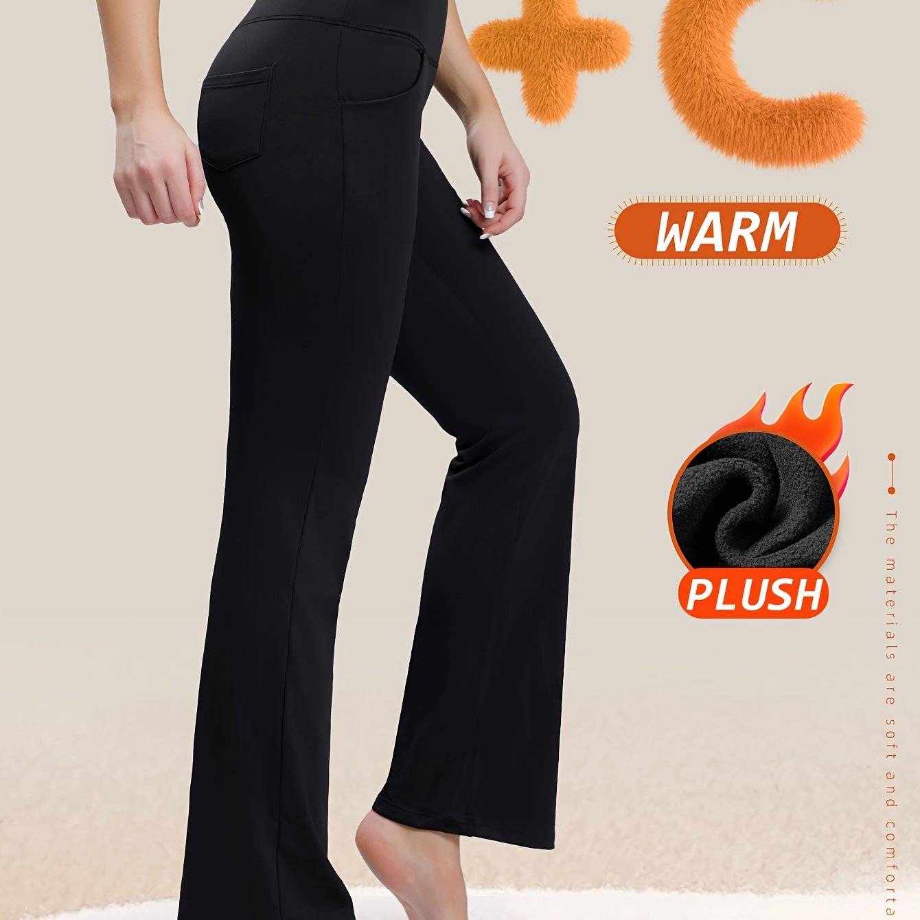 TEMU 여성용 가을 겨울 보온 안감 두꺼운 레깅스, 하이웨이스트 플레어 편안한 러닝 S 팬츠