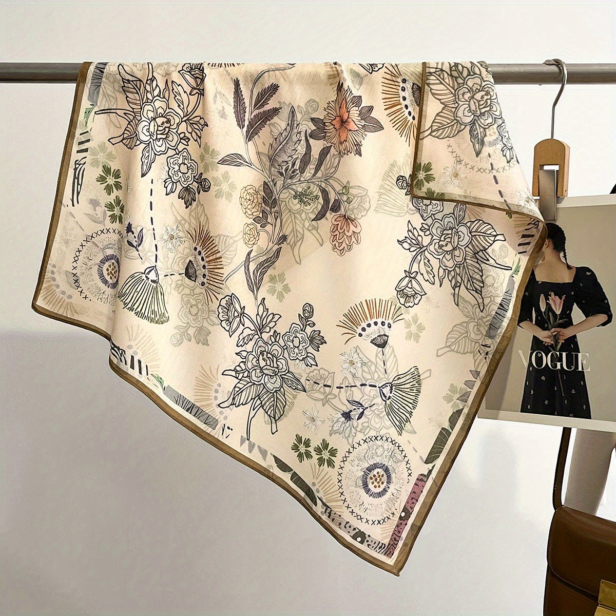 TEMU 플로럴 프린트 스퀘어 스카프 - 가벼운 자외선 차단 및 방풍 목도리, 여성과 남성을 위한 다용도 패션 액세서리, 야외 여행 및 캐주얼 외출용 세탁 가능, 스타일리시한 선보호 | 우아한 넥웨어 | 내구성 있는 프린지 가장자리