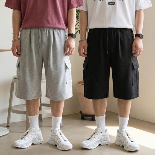 [쿼터]1+1 남자 핀턱 버뮤다 카고 팬츠 와이드 6부 7부 트레이닝 반바지