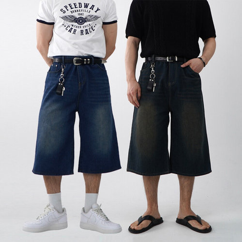 오엔엘 / 1+1 키링 남자7부청바지 버뮤다청반바지 남자데님버뮤다팬츠