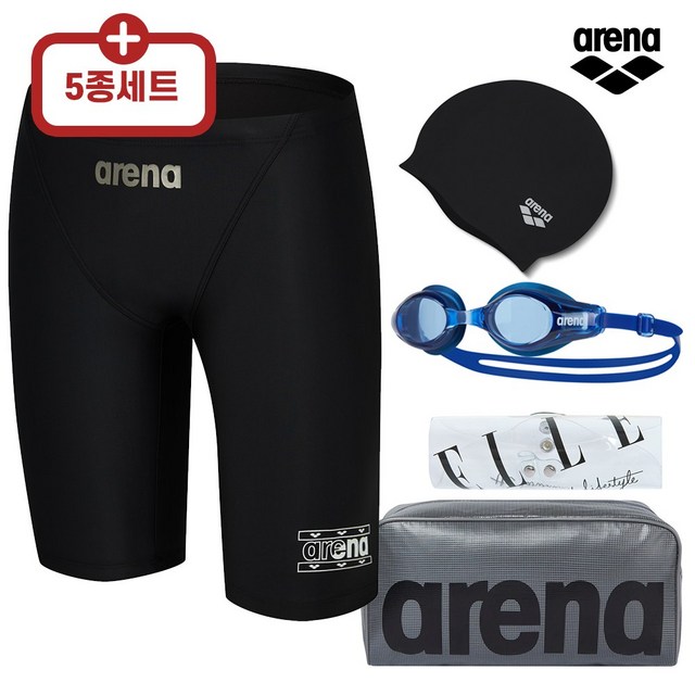 여성수영복 5종세트(수경+수모+가방)여자 실내 빅사이즈 원피스 반신 반팔 올인원 래쉬가드 아쿠아로빅 수영강습 초등 생존수영복 아레나