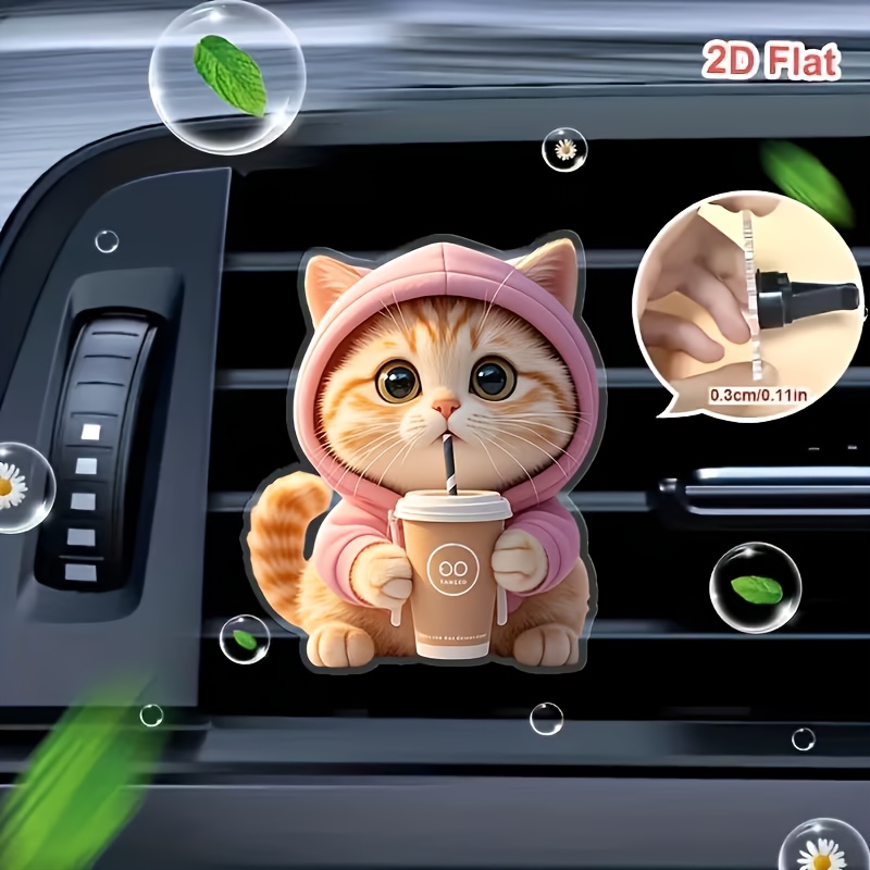 TEMU 2D 평면, 1개 귀여운 고양이 리필 가능 차량용 공기 청정기 퍼퓸 디퓨저 클립, 차량 벤트 차량 내부 액세서리, 차량용 향기 디퓨저, "무향" 무향 스펀지 패드 2개 포함 차량용 아로마테라피 디퓨저, 크리스마스, 발렌타인데이 소형 선물, 2D 평면
