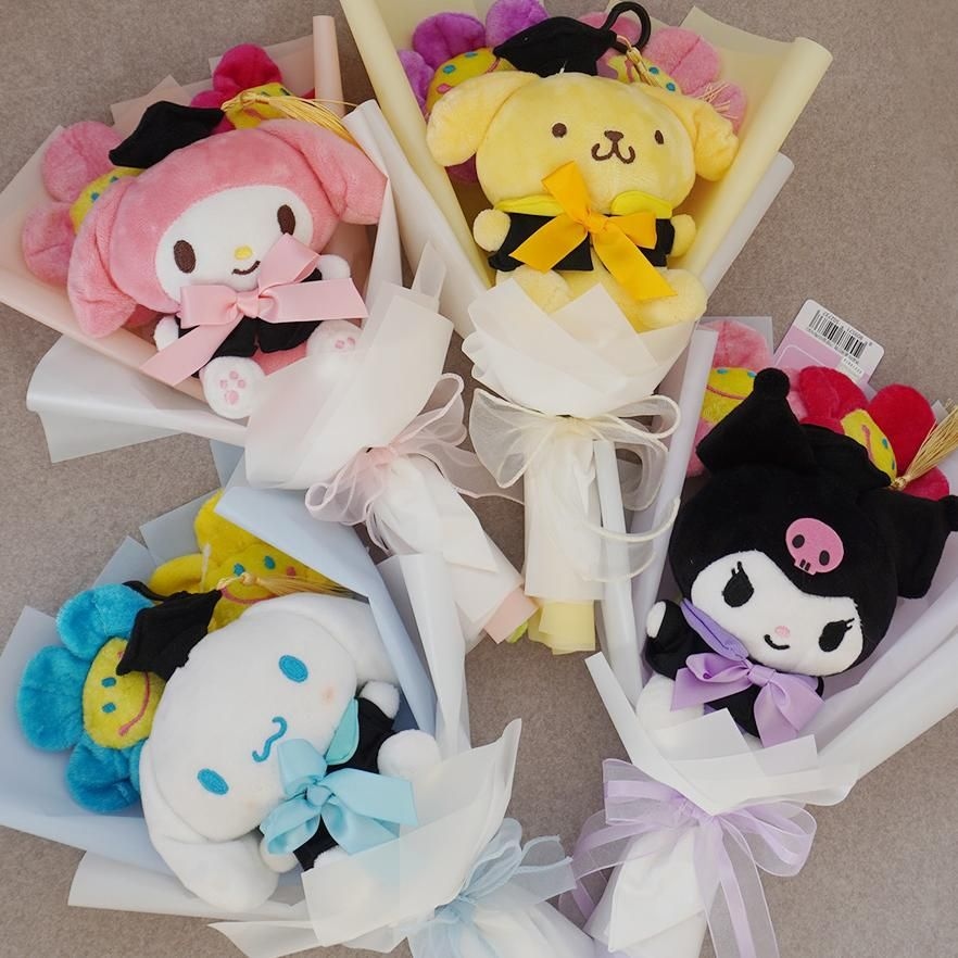 졸업 산리오 학사모 인형 꽃다발-쿠로미