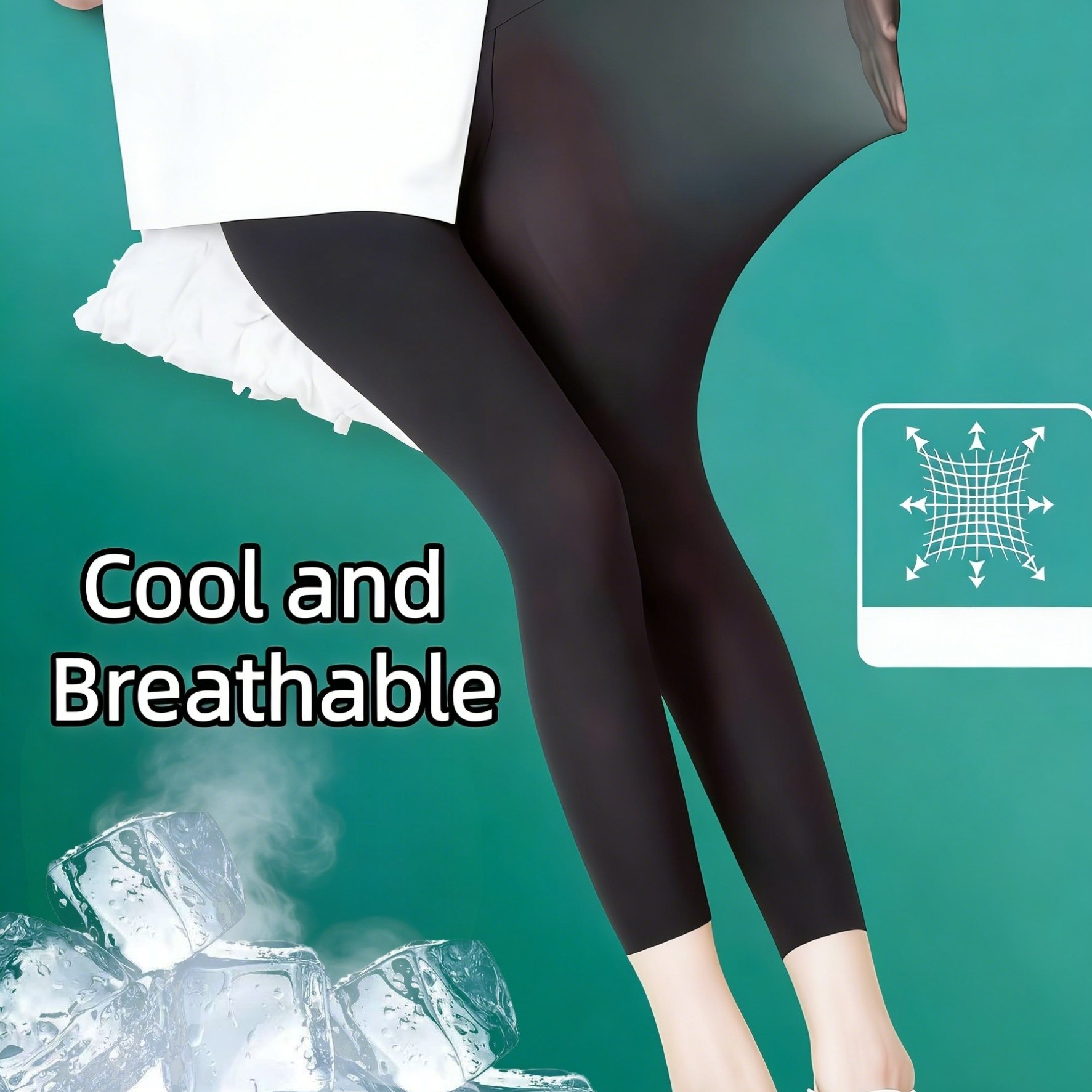 TEMU 여성용 블랙 시원하고 통기성 좋은 하이웨이스트 스트레치 레깅스 바지, 심부름용 및 캐주얼웨어용