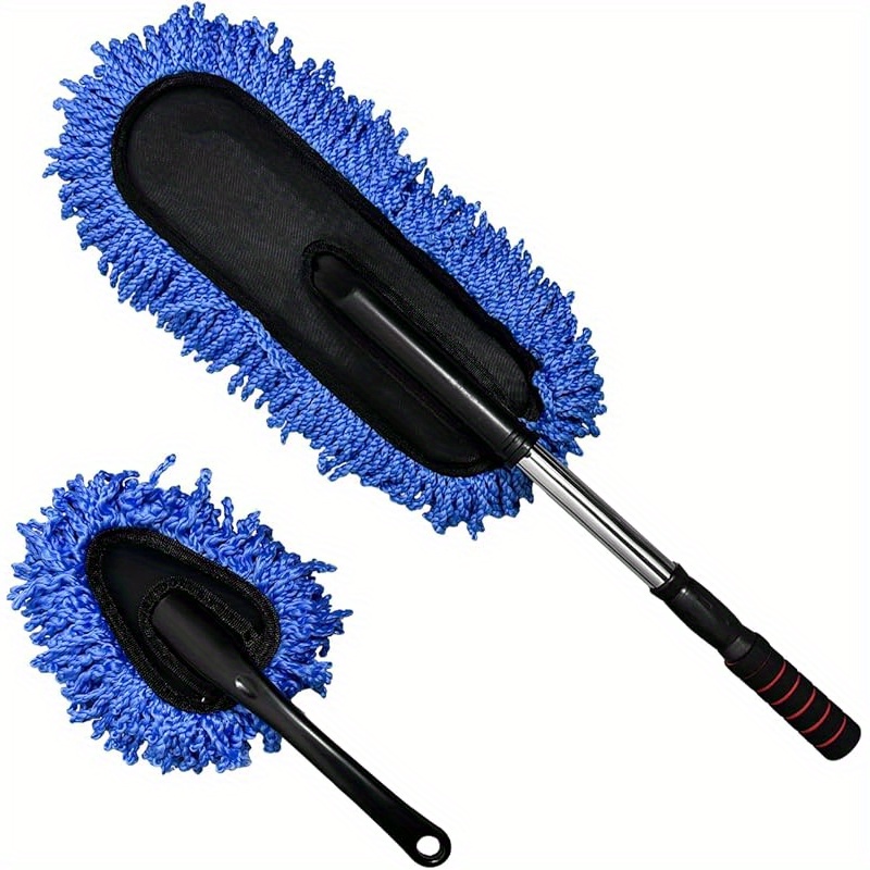 TEMU 2개입 극세사 차량 먼지떨이, 스크래치 방지 차량 외부 내부 대형 먼지 제거 청소 브러시, 확장 가능한 손잡이가 있는 다용도 차량 먼지 클리너, 차량용품 (블루)